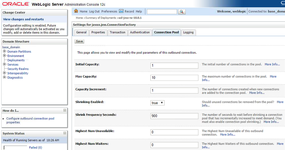 Note this document provides instructions on configuring and deploying the Solace JCA 1.5 resource adapter using the web console application of WebLogic, as well as instructions on configuring Solace as a Foreign JMS Provider Module. For detailed background on either Solace JMS or the WebLogic Application Server refer to the referenced documents below.