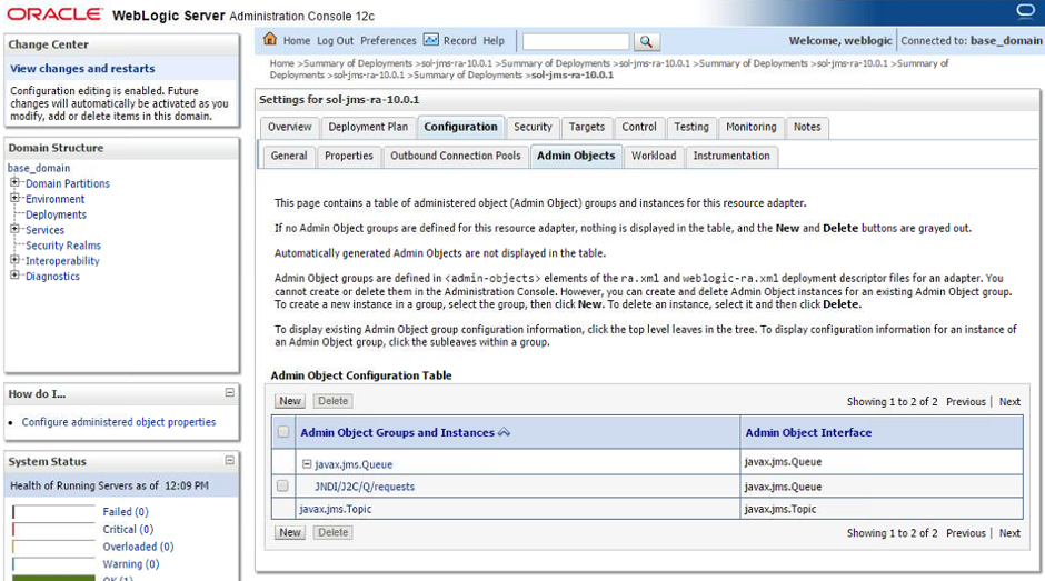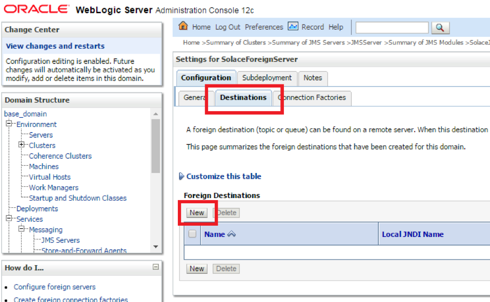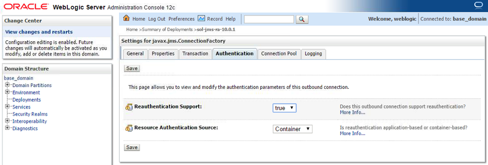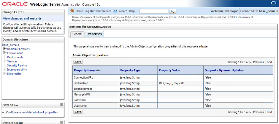 Solace provides a JCA compliant resource adapter for integrating Java enterprise applications with the Solace JMS event broker. There are two options for integrating Solace with WebLogic for use by Java enterprise applications including embedded and stand-alone deployment. This section will cover instructions on configuring the Resource Adapter Archive (RAR) file for stand-alone deployment, and configuring Solace as a Foreign JMS Provider